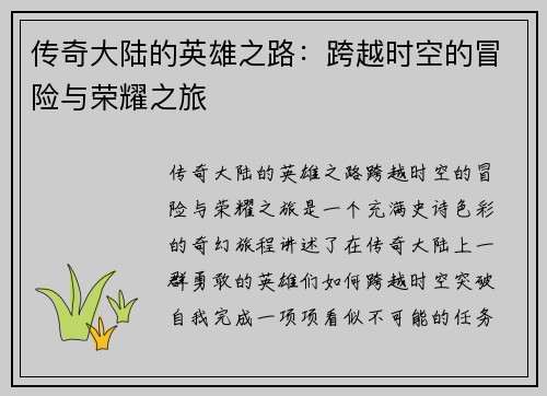 《复仇武神贾克斯:无尽战斗的传承与荣耀之路》是一篇深入探讨贾克斯这一英雄角色的文章。贾克斯,作为《英雄联盟》中的传奇人物,其背后蕴藏着丰富的故事与深刻的象征意义。从他无尽战斗的使命开始,到他成为战斗的象征,这一切都贯穿着对荣耀、复仇与胜利的永恒追求。本文将从四个方面详细探讨贾克斯的传承与荣耀之路,分...
